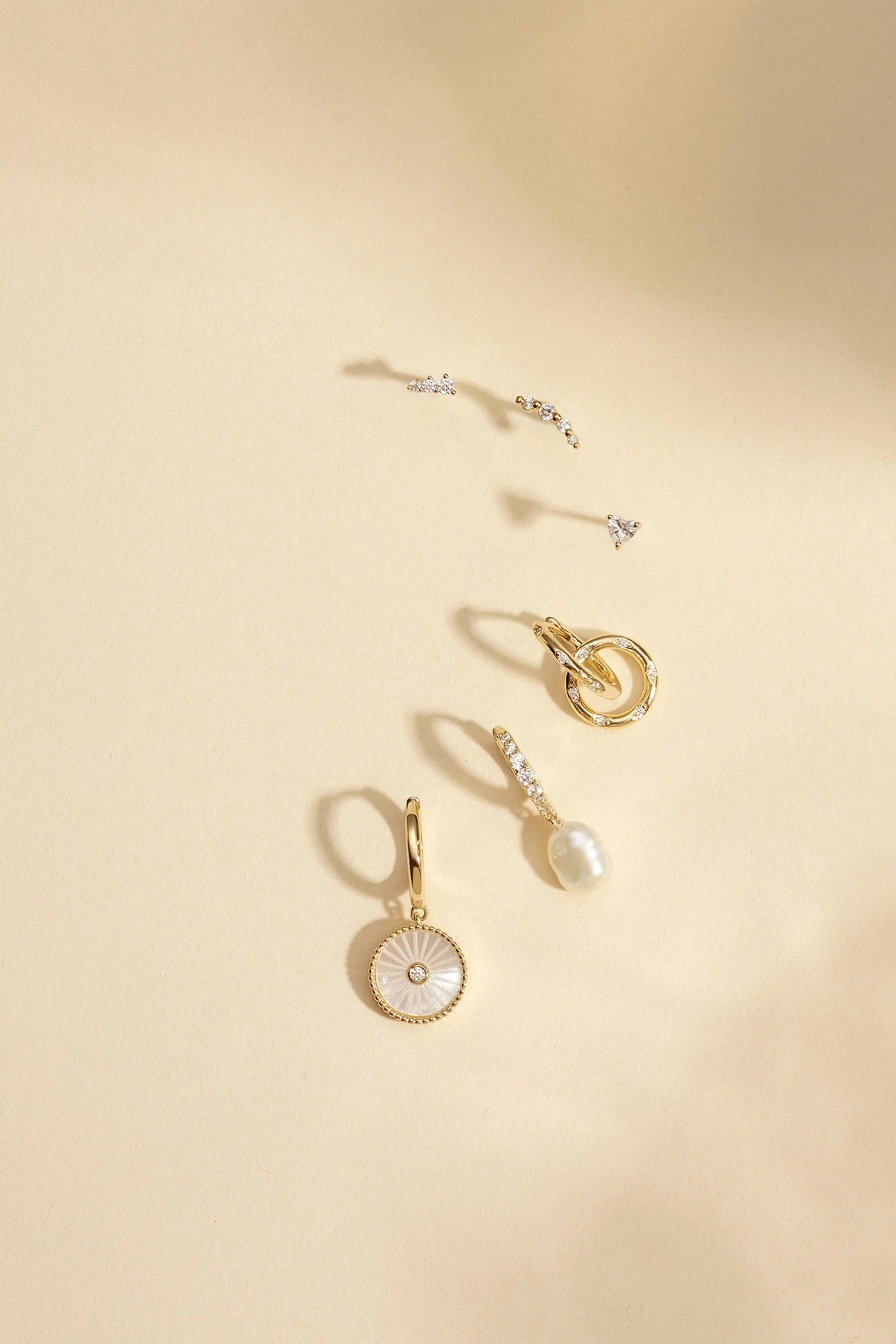 Put the CZ Huggie Hoops With Circle Drop in heavy rotation—clean, confident shine that powers every outfit from desk to dinner and everywhere after.