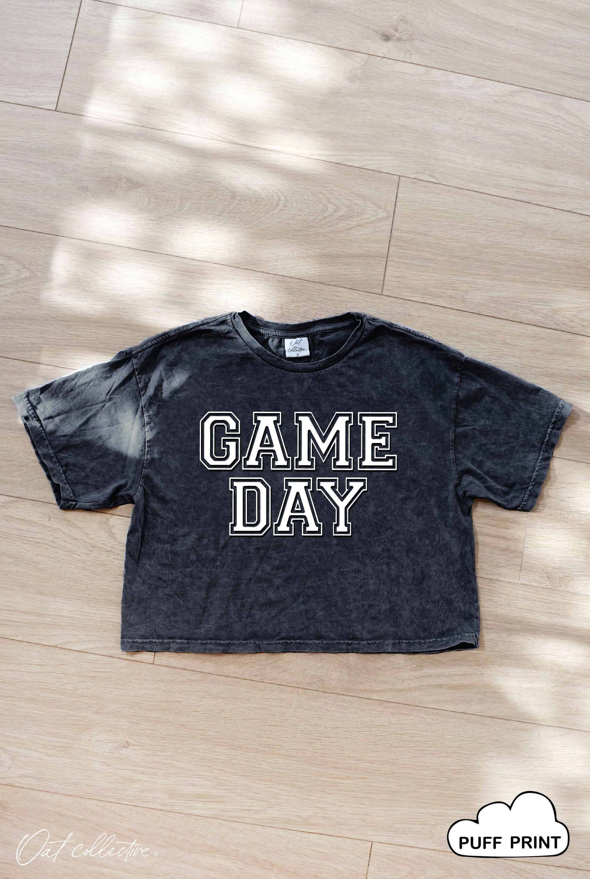GAME DAY PUFF Cropped Mineral Washed Graphic Top